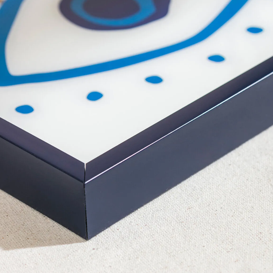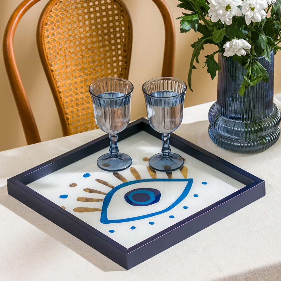 ถาดเคลือบเงาหรูหราลายตาปีศาจเพ้นท์มือ ถาดเสิร์ฟคุณภาพสูงสำหรับโต๊ะกาแฟ อาหารเช้าบนเตียง จากเวียดนาม