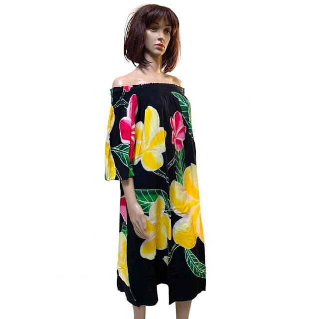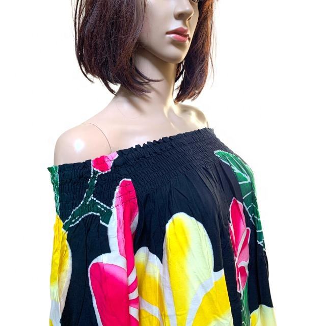 ชุดเดรสเปิดไหล่สำหรับผู้หญิงชุดเดรสผ้าเรยอน100% วาดด้วยมือลายดอกไม้