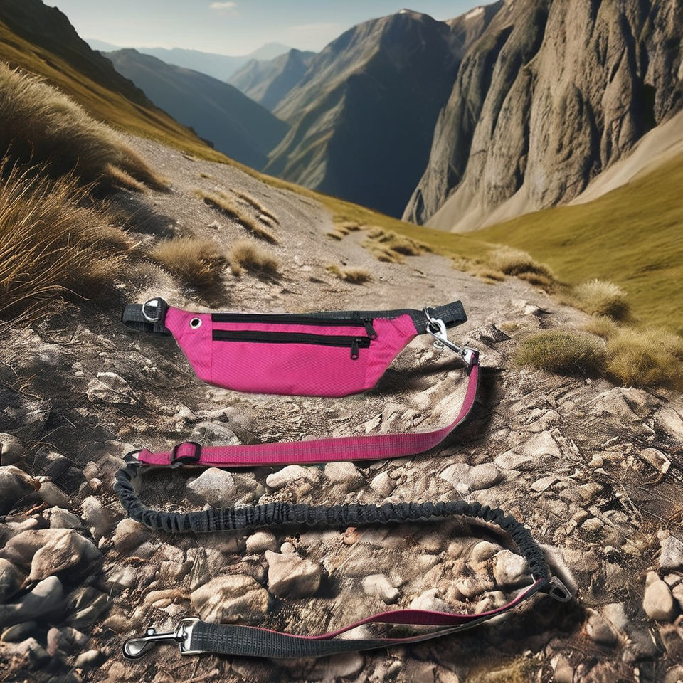 สายจูงสุนัขแบบแฮนด์ฟรีพร้อมกระเป๋าคาดเอวสำหรับวิ่งจ๊อกกิ้ง เชือกไนลอนคุณภาพสูง สายรัดปรับได้ทุกขนาด ซักมือได้
