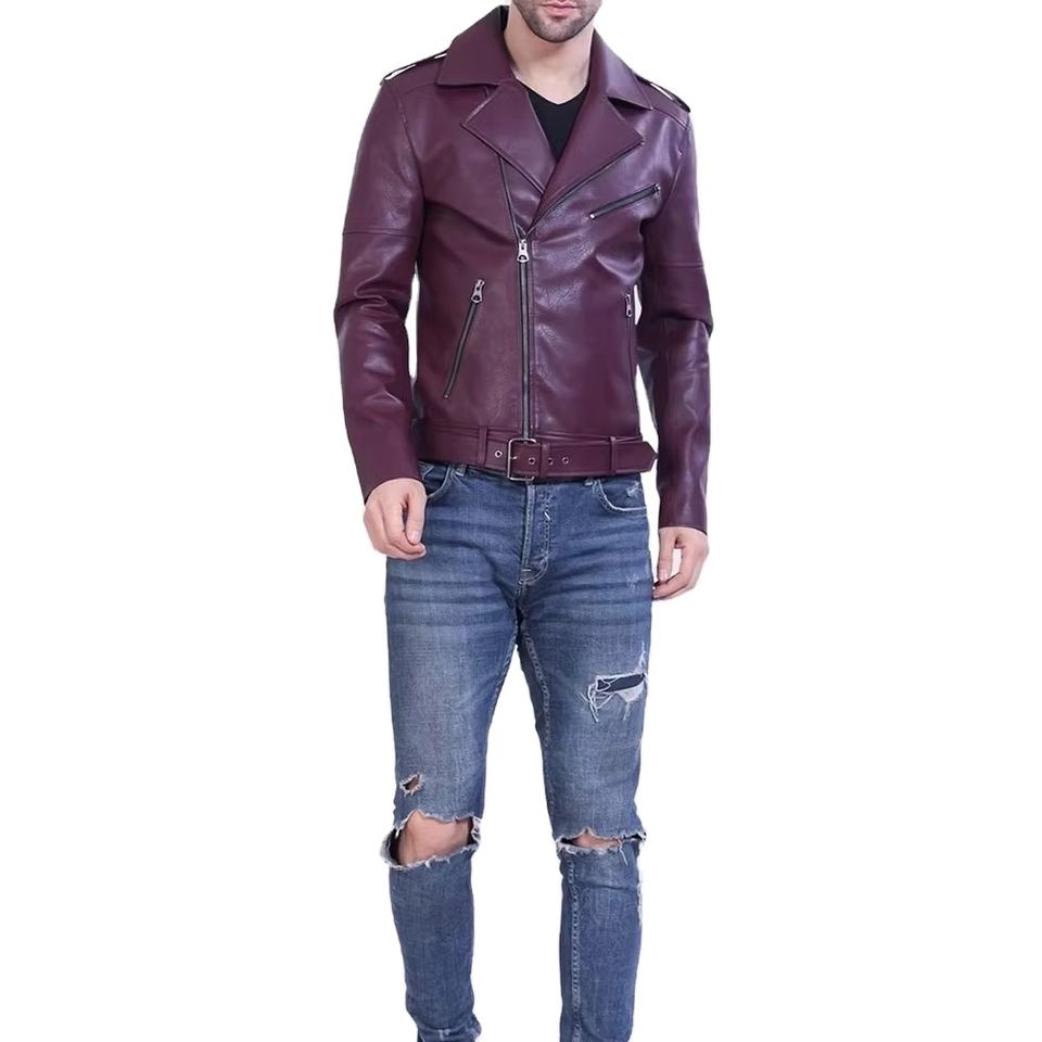 แจ็คเก็ตหนังผู้ชายทรงหล่อ ปรับขนาดได้ ผลิตจากโรงงาน หนัก ทนทาน บรรจุภัณฑ์ปรับแต่งได้