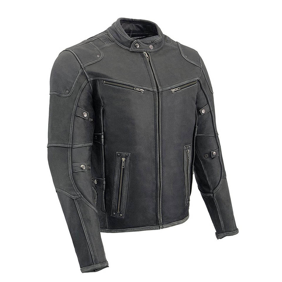 แจ็คเก็ตหนังผู้ชายทรงหล่อ ปรับขนาดได้ ผลิตจากโรงงาน หนังหนา บรรจุภัณฑ์ปรับแต่งได้