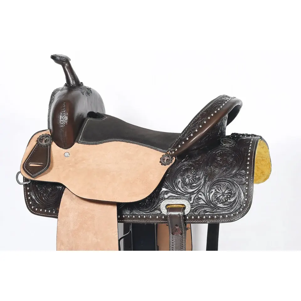 อานม้าแบบตะวันตกที่ทำด้วยมือ100% หนังวัวทนทานต่อการใช้งานทนทานต่อการขี่ม้า