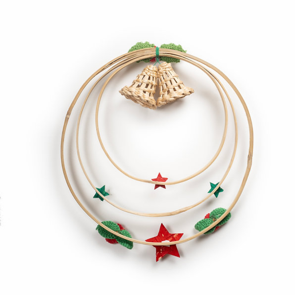 พวงหรีดหวายทรงกลมแบบรักษ์โลกจากเวียดนาม สำหรับตกแต่งประตูหน้าบ้านในช่วงคริสต์มาส
