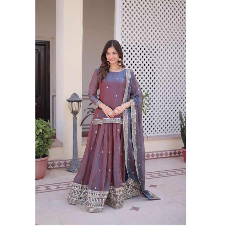ชุดเลเฮนกาโชลีงานฝีมือดีไซน์เนอร์ พร้อมเสื้อท่อนบนสำหรับงานแต่งงาน ผ้าคลุมเลเฮนกา และผ้าพันคอ ประดับด้วยงานปักเลื่อม ราคาขายส่ง