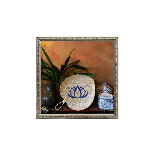 พัดมือจากไม้ไผ่สานด้วยมือดอกบัวสีน้ำเงินตกแต่งงานแต่งงานแบบเรียบง่าย
