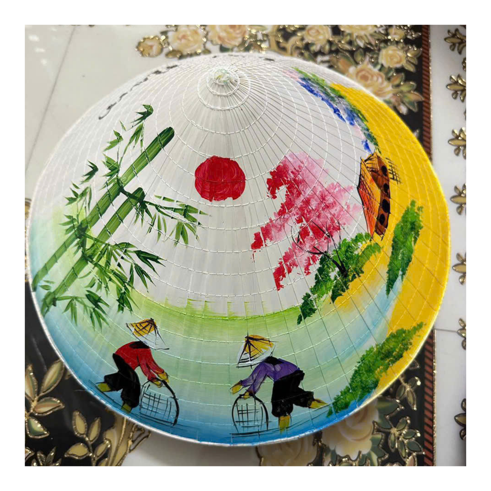 หมวกทรงกรวยใบปาล์มไม้ไผ่สานด้วยมือสไตล์เวียดนามแท้สวมใส่สบายใช้งานได้จริงเหมาะสำหรับกิจกรรมกลางแจ้ง