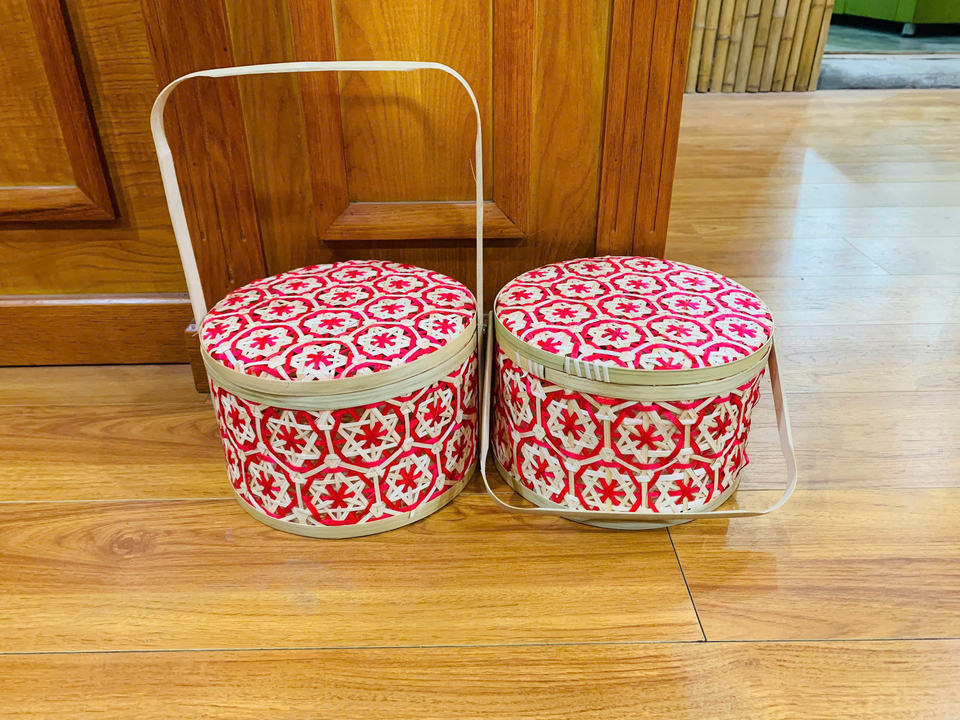 ตะกร้าของขวัญสานมือจากไม้ไผ่และหวาย