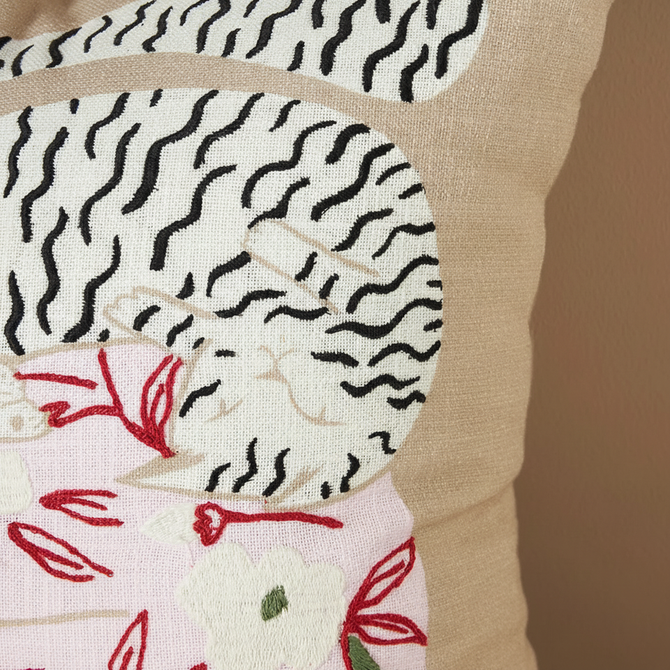 ปลอกหมอนลายทางผ้าฝ้ายโบฮีเมียน,ปลอกเบาะสีขาวและสีดำทอมือพร้อมพู่