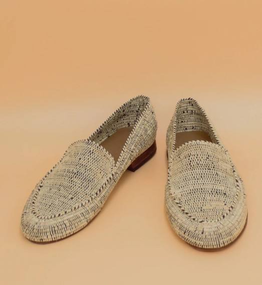 รองเท้าโลฟเฟอร์สานมือสีดำและสีธรรมชาติสำหรับผู้ชาย รองเท้าช่างฝีมือชาวโมร็อกโก
