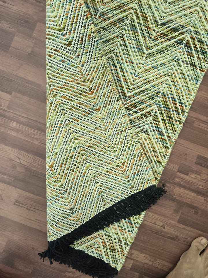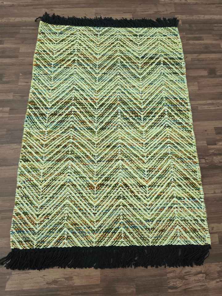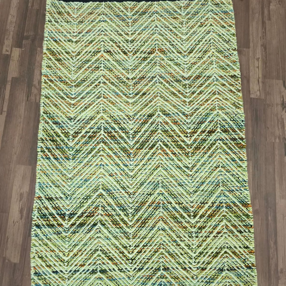 ดาริสีน้ำตาลเข้มแบบถักด้วยมือ:พรมปูพื้นสีเขียวลายบั้งทอมือ