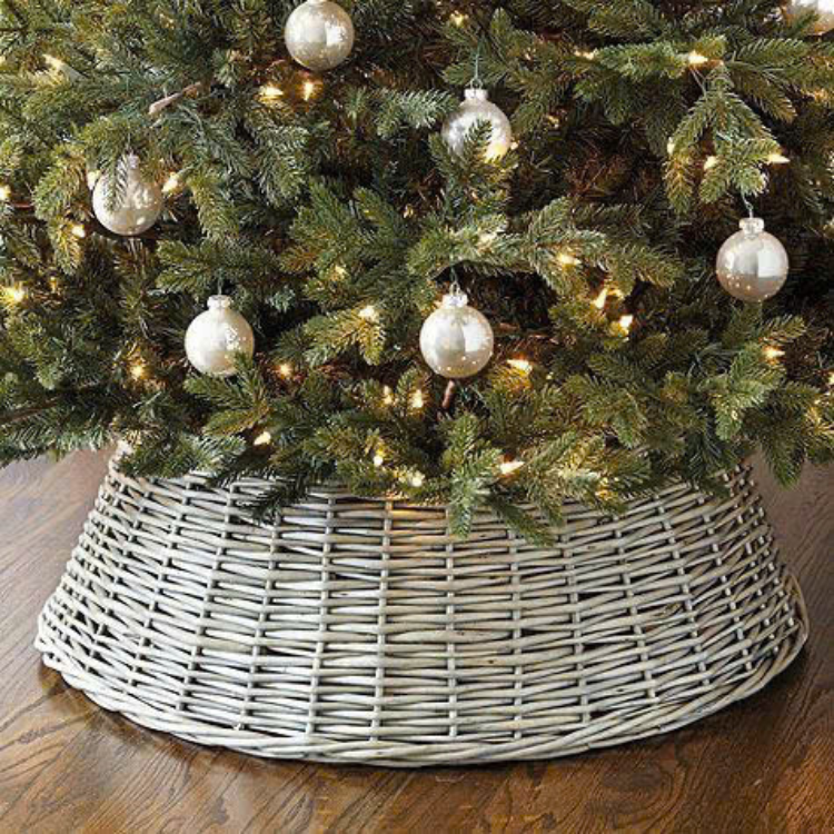 Handwoven Modern Wicker Rattan Christmas Tree Skirt and Collar for Natural Holiday Decor and Farmhouse Base Display