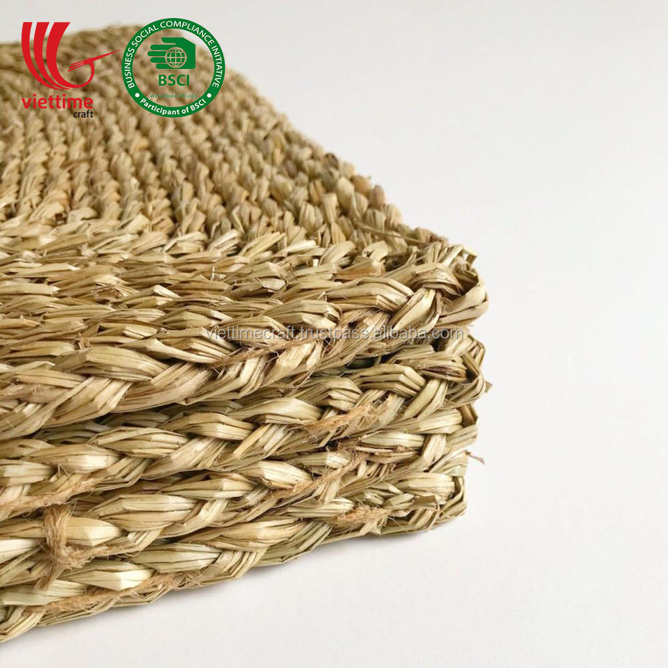 แผ่นรองจานสี่เหลี่ยมผืนผ้าสานมือจากหญ้าทะเลแบบคลาสสิก เป็นมิตรกับสิ่งแวดล้อม ขนาด 14x19 นิ้ว ผลิตในเวียดนาม บรรจุกล่อง ขายส่งโดย Viettimecraft