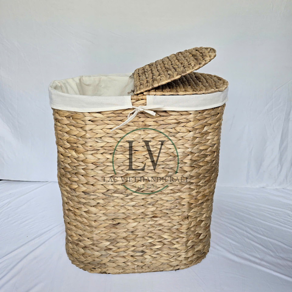 ตะกร้าซักผ้าแบบพกพาพร้อมหูหิ้วทำมือคลาสสิกผักตบชวาธรรมชาติตะกร้าซักผ้าสกปรกจากเวียดนาม