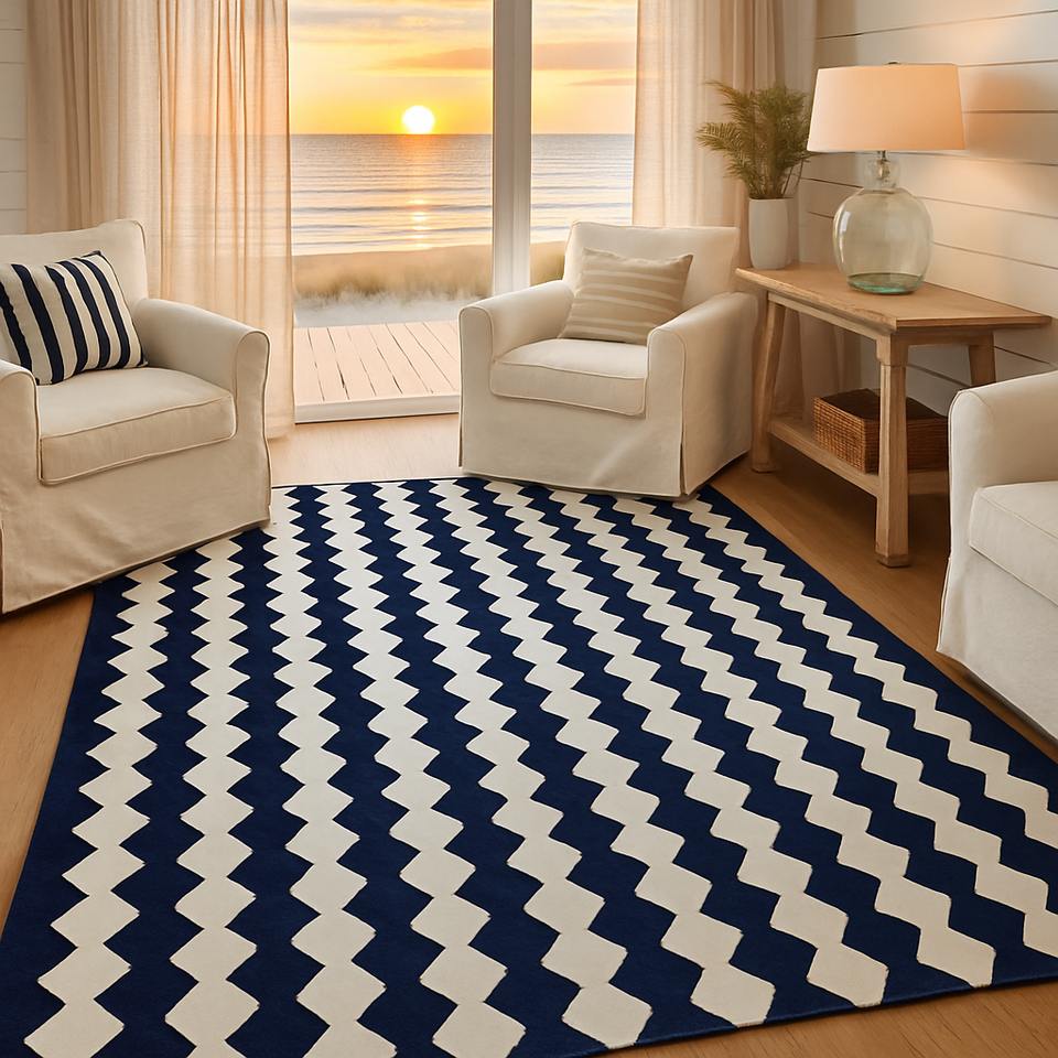 พรมทอมือจากผ้าฝ้ายกันลื่น ลายซิกแซกสีกรมท่าขาว ขนสั้น นุ่ม ทนทาน ทันสมัย เหมาะสำหรับปูพื้นบ้าน ใช้สำหรับละหมาดหรือปิกนิก