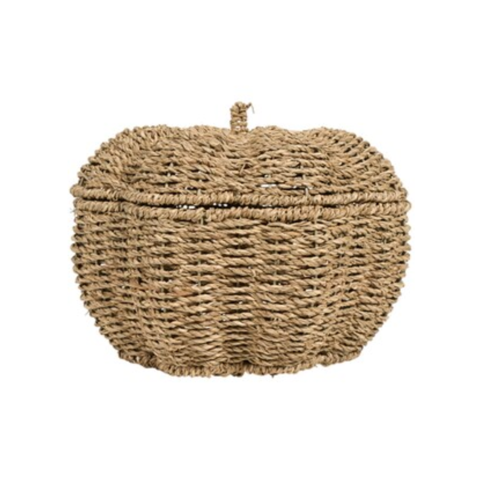 ตะกร้าสานมือจากหญ้าทะเลรักษ์โลก รูปทรงฟักทอง ตะกร้าทำมือสำหรับฤดูใบไม้ร่วง วันขอบคุณพระเจ้า และเทศกาลเก็บเกี่ยว จากเวียดนาม