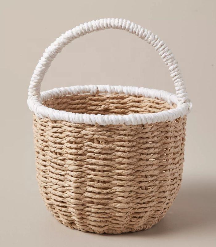 ตะกร้าผักตบชวาทอมือสำหรับเด็ก,ตะกร้าปิกนิกสายกระดาษ OEM แบบกำหนดเองของขวัญวันอีสเตอร์ผลิตในเวียดนาม
