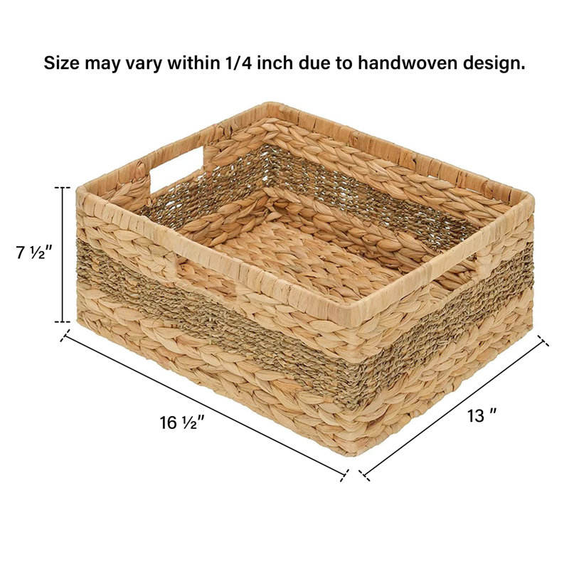ตะกร้าหวายขนาดจัมโบ้แบบถักด้วยมืออุปกรณ์จัดเก็บผักตบชวาและหญ้าทะเลธรรมชาติพร้อมที่จับ