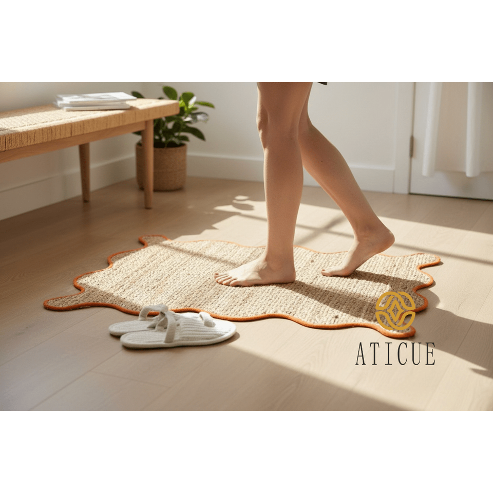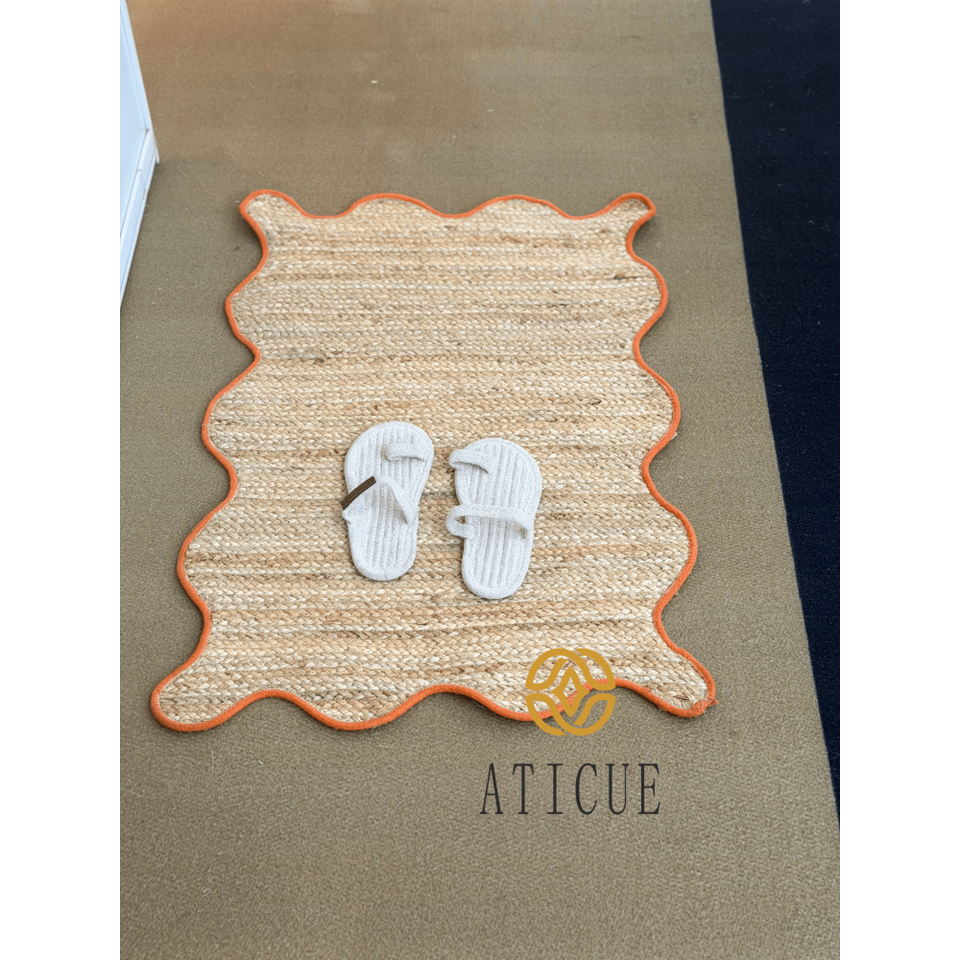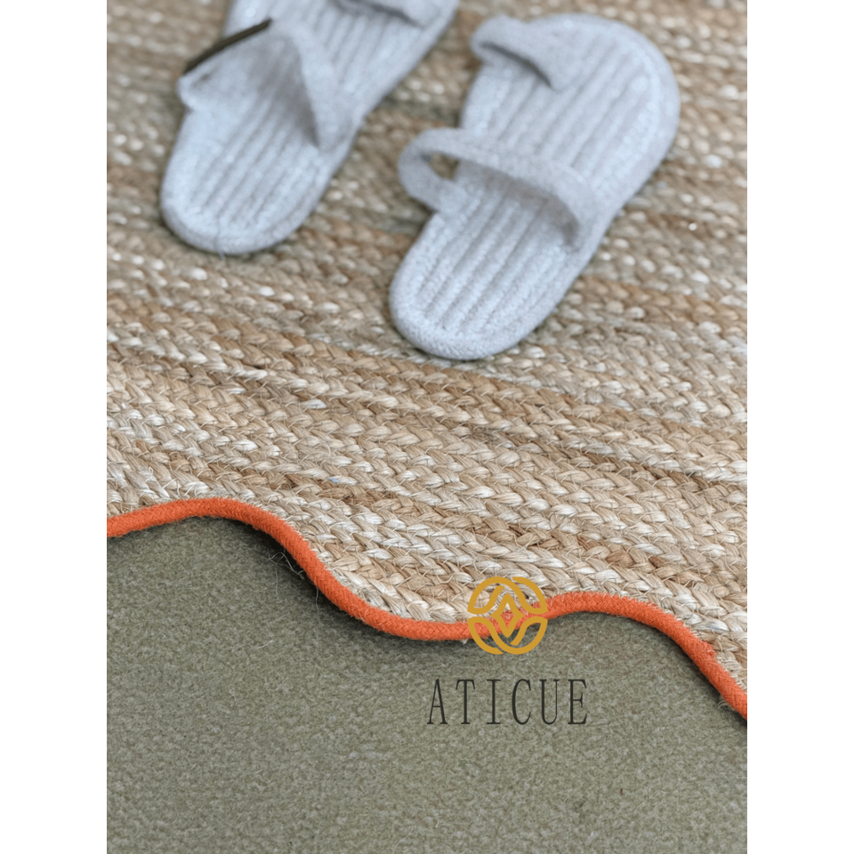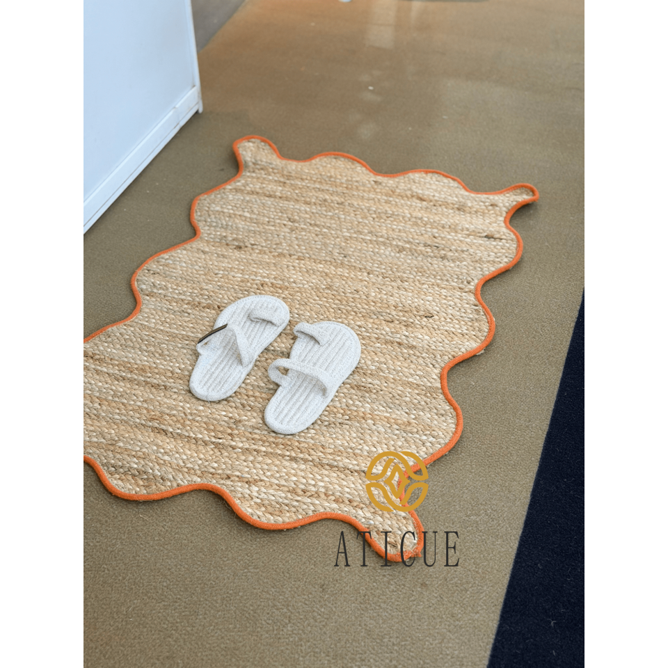 พรมปอกระเจาถักด้วยมือพรมสี่เหลี่ยมขอบหยักตกแต่งตามธรรมชาติสำหรับบ้านห้องนั่งเล่นห้องนอน