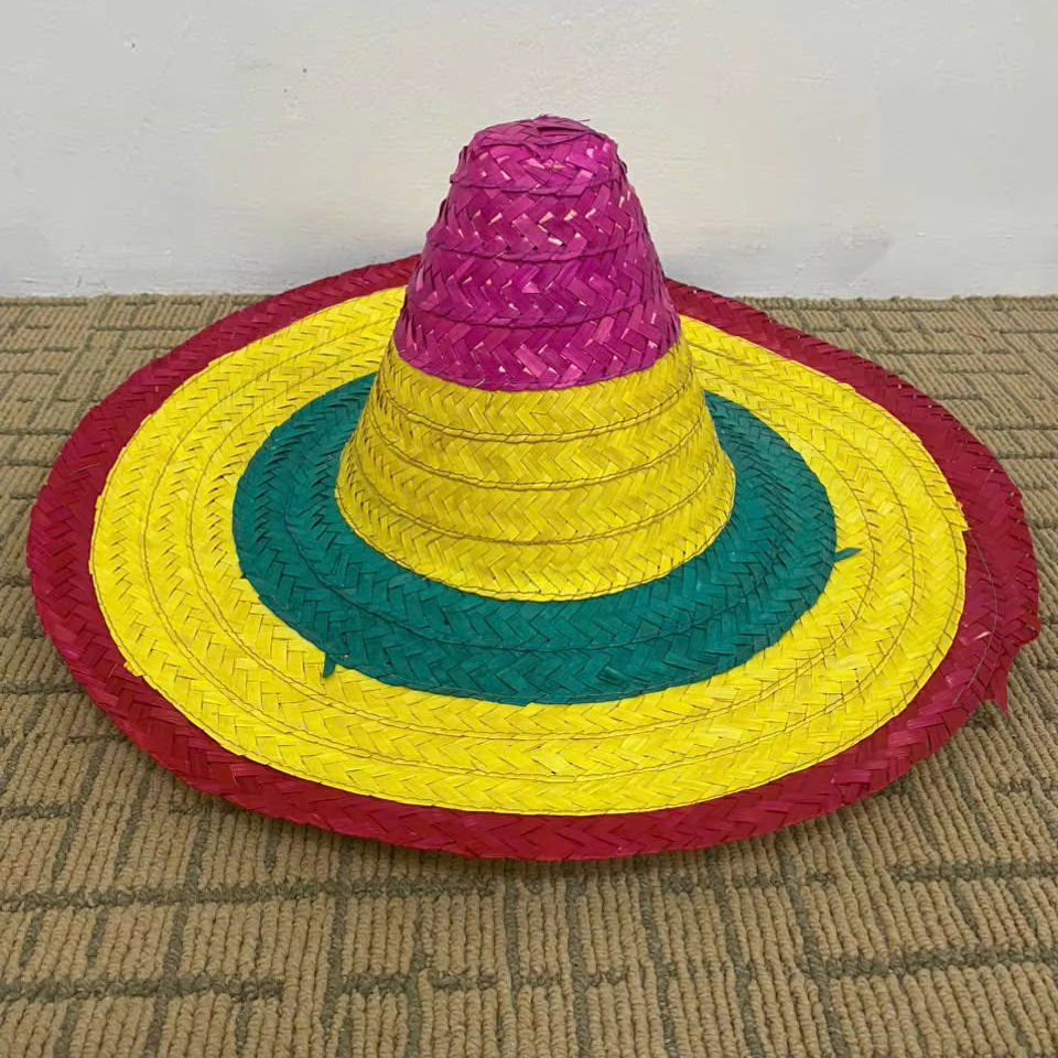 หมวกสานมือสไตล์เม็กซิกันสำหรับงานซินโก เดอ มาโยและงานอีเว้นท์ต่างๆ ใช้ได้ทุกวันในฤดูร้อน อุปกรณ์เสริมสำหรับกีฬาปั่นจักรยาน