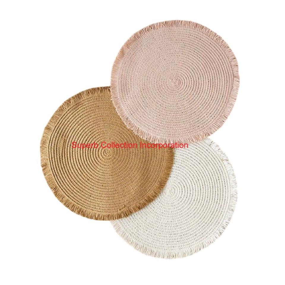 แผ่นรองจานทรงสี่เหลี่ยมทำจากเส้นใยธรรมชาติถักด้วยมือขอบทรงหอยเชลล์สำหรับตกแต่งโต๊ะรับประทานอาหารใช้ในบ้านและร้านอาหาร