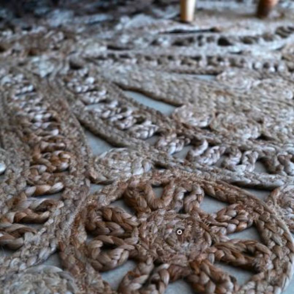 ชื่อสินค้า:พรมปูพื้นทรงกลม ทำจากปอกระเจาธรรมชาติ สานด้วยมือ