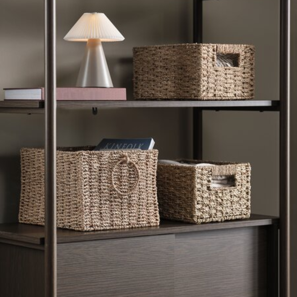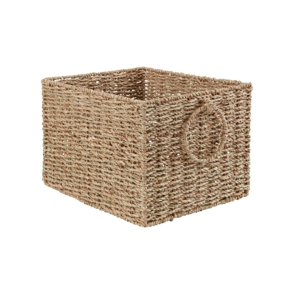 ตะกร้าสานจากหญ้าทะเลทรงสี่เหลี่ยมผืนผ้าสำหรับจัดเก็บ