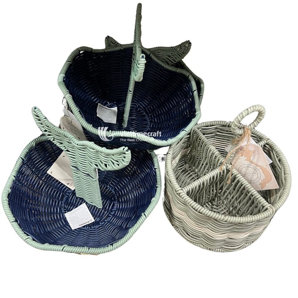 ตะกร้าหวาย PP แบบทอมือหรือตะกร้าจัดเก็บเอกสารถาดเสิร์ฟพร้อมหูหิ้วขายส่งจากเวียดนาม