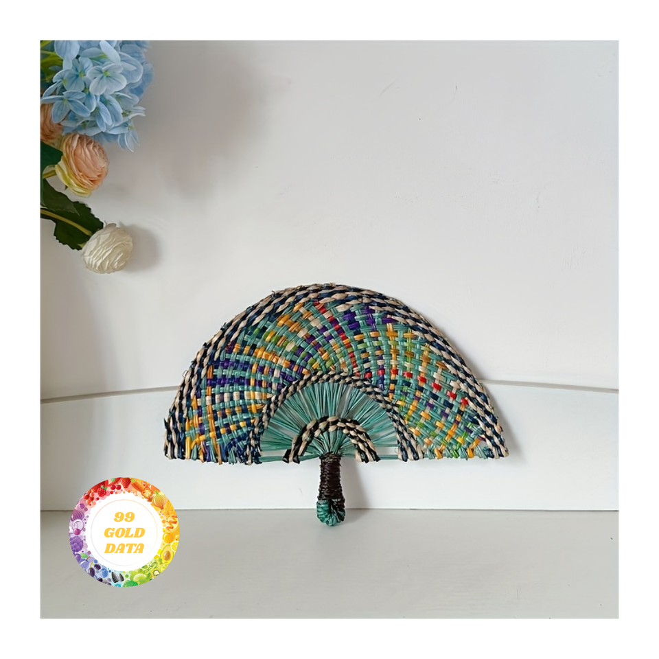 พัดลมฝ่ามือทำด้วยมือและพัดลมหญ้าทะเลตกแต่งงานฝีมือแบบดั้งเดิมจำนวนมากสำหรับตลาดส่งออกเขตร้อน