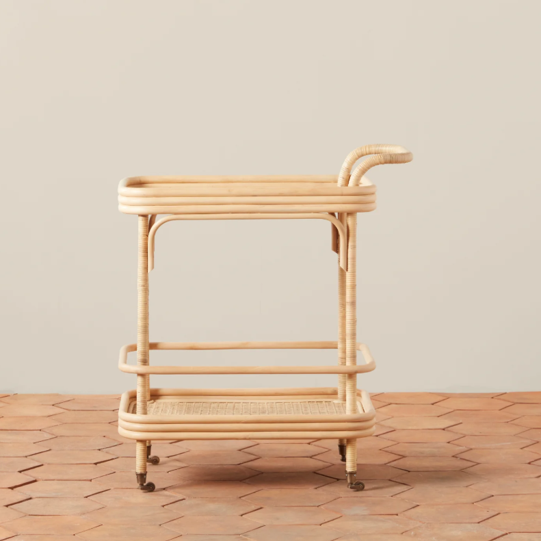 รถเข็นหวายสานมือสไตล์โบโฮสำหรับตกแต่งเฟอร์นิเจอร์เป็นมิตรต่อสิ่งแวดล้อมวัสดุธรรมชาติขายส่งจากเวียดนาม