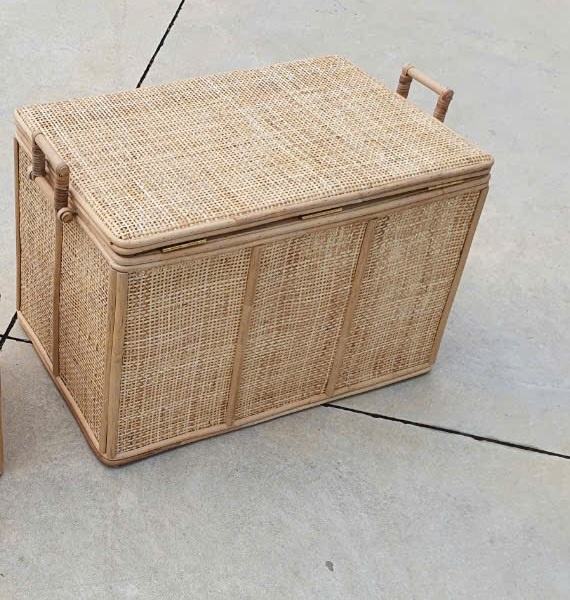 ตะกร้าหวายสานมือกล่องเก็บของขนาดใหญ่เป็นมิตรกับสิ่งแวดล้อมสำหรับตกแต่งบ้านและจัดเก็บหวาย