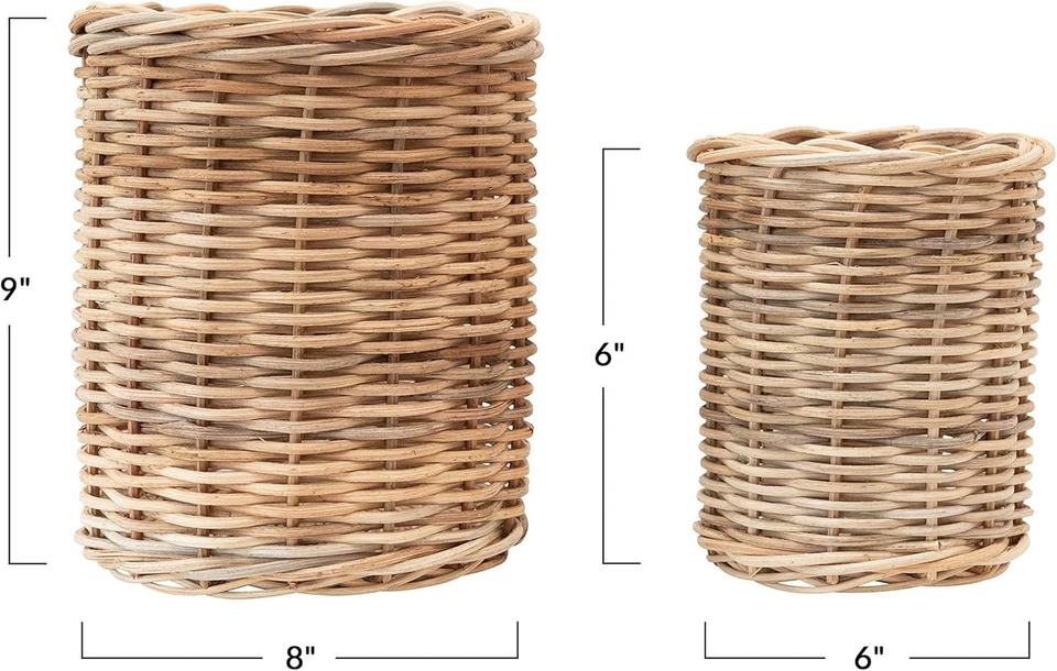 ชุดตะกร้าเก็บของทรงกระบอกหวายสานมือ - กระถางต้นไม้หวายธรรมชาติและถังจัดระเบียบอเนกประสงค์สำหรับใช้ในบ้าน ขายส่ง