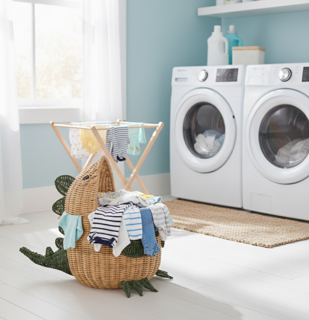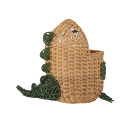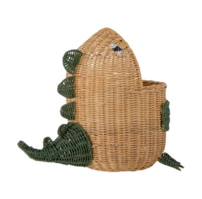 ตะกร้าเก็บของเด็กทรงไดโนเสาร์สานด้วยมือจากหวาย พร้อมฝาปิด ตะกร้าใส่ของเล่นสำหรับห้องเด็ก ห้องเล่น หรือห้องซักผ้า