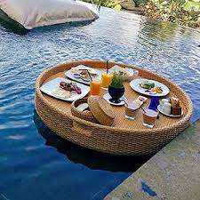หวายทอมือลอยถาดหรูหราให้บริการว่ายน้ำที่มีรูปทรงกลม