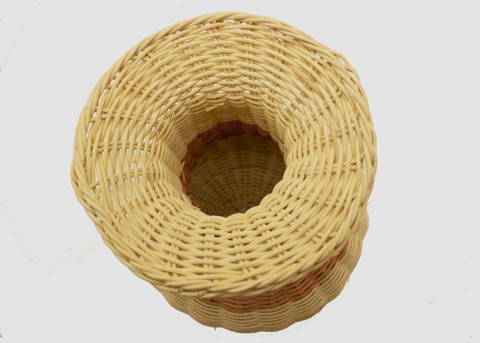 แจกันดอกไม้หวายสานลายทางสองสี - แจกันหวายตกแต่งสำหรับตกแต่งโต๊ะที่บ้าน