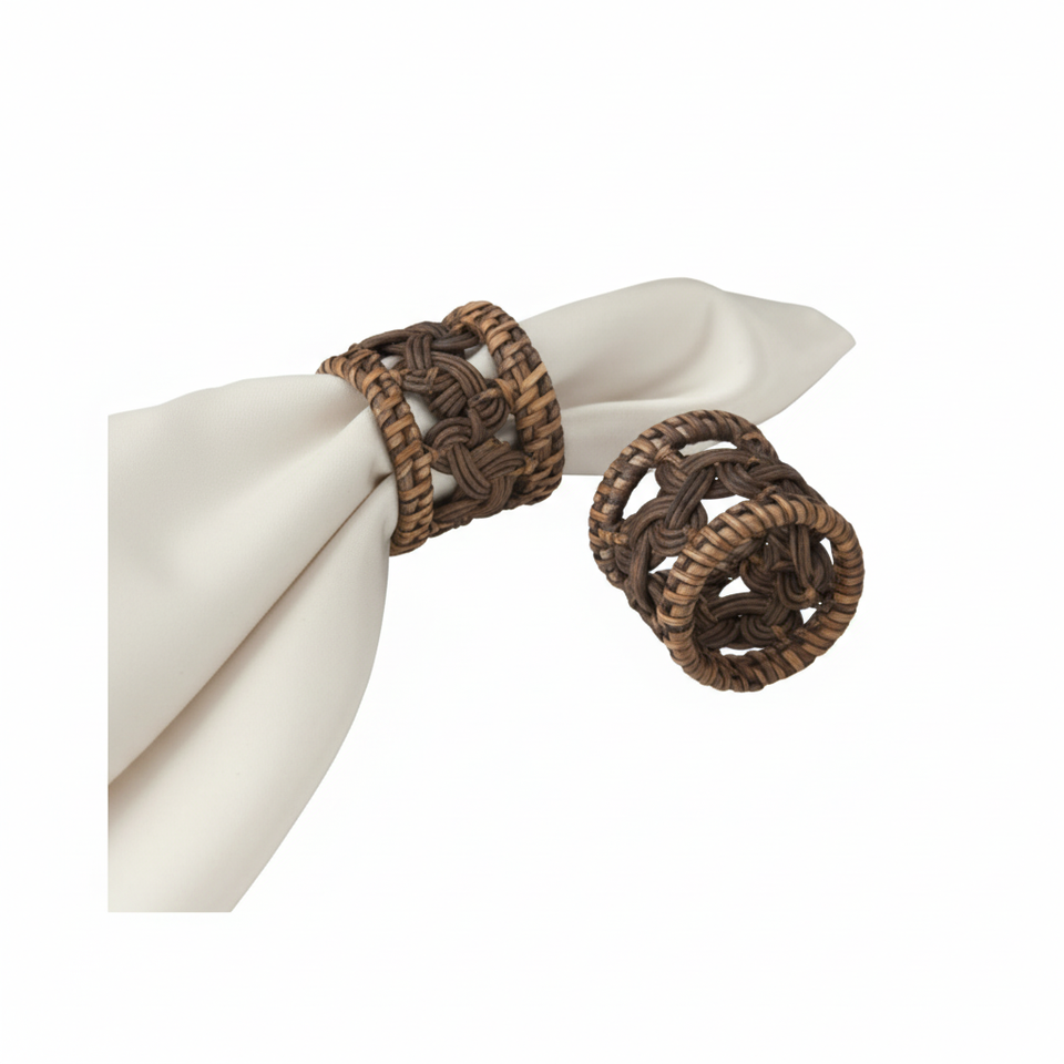 ห่วงผ้าเช็ดปากหวายสานด้วยมือที่สร้างขึ้นโดยช่างฝีมือที่มีทักษะเหมาะสำหรับการจัดโต๊ะอาหารที่ไม่เหมือนใคร