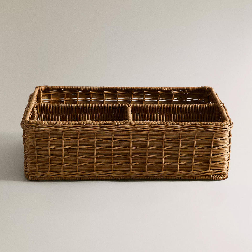 ตะกร้าหวายสานมือพร้อมช่องใส่ของหวายแบบชนบทสำหรับห้องนั่งเล่นห้องครัวหรืออุปกรณ์สำหรับสถานรับเลี้ยงเด็ก