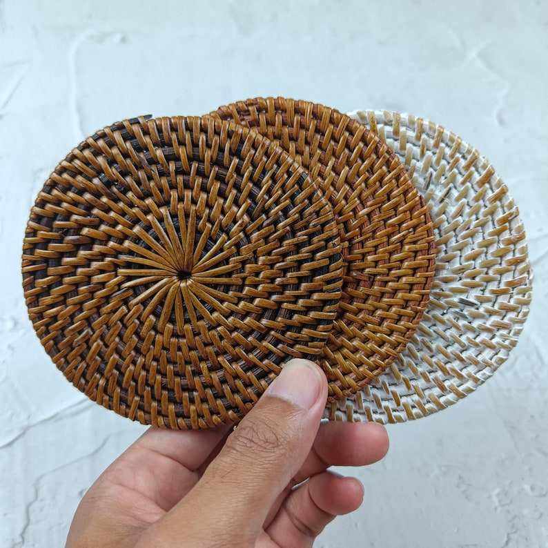 แผ่นรองจานหวายสานมืออเนกประสงค์ ใช้เป็นที่รองจานร้อน ที่วางช้อน หรือแผ่นรองโต๊ะ สำหรับใช้ในบ้าน ห้องครัว และร้านกาแฟ