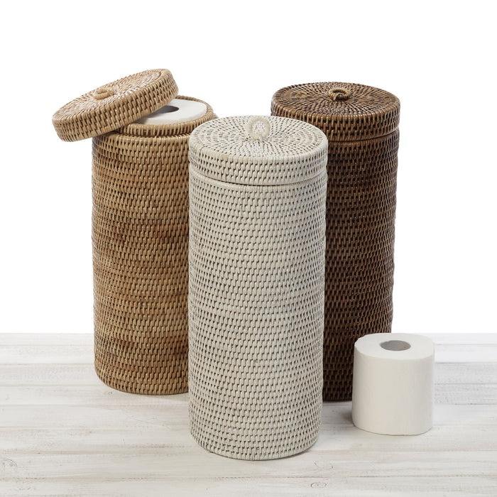 หวายทอมือที่ใส่กระดาษชำระภาชนะหวายทรงสูงจัดเก็บกระดาษทิชชู่หวายธรรมชาติที่วางม้วนกระดาษ