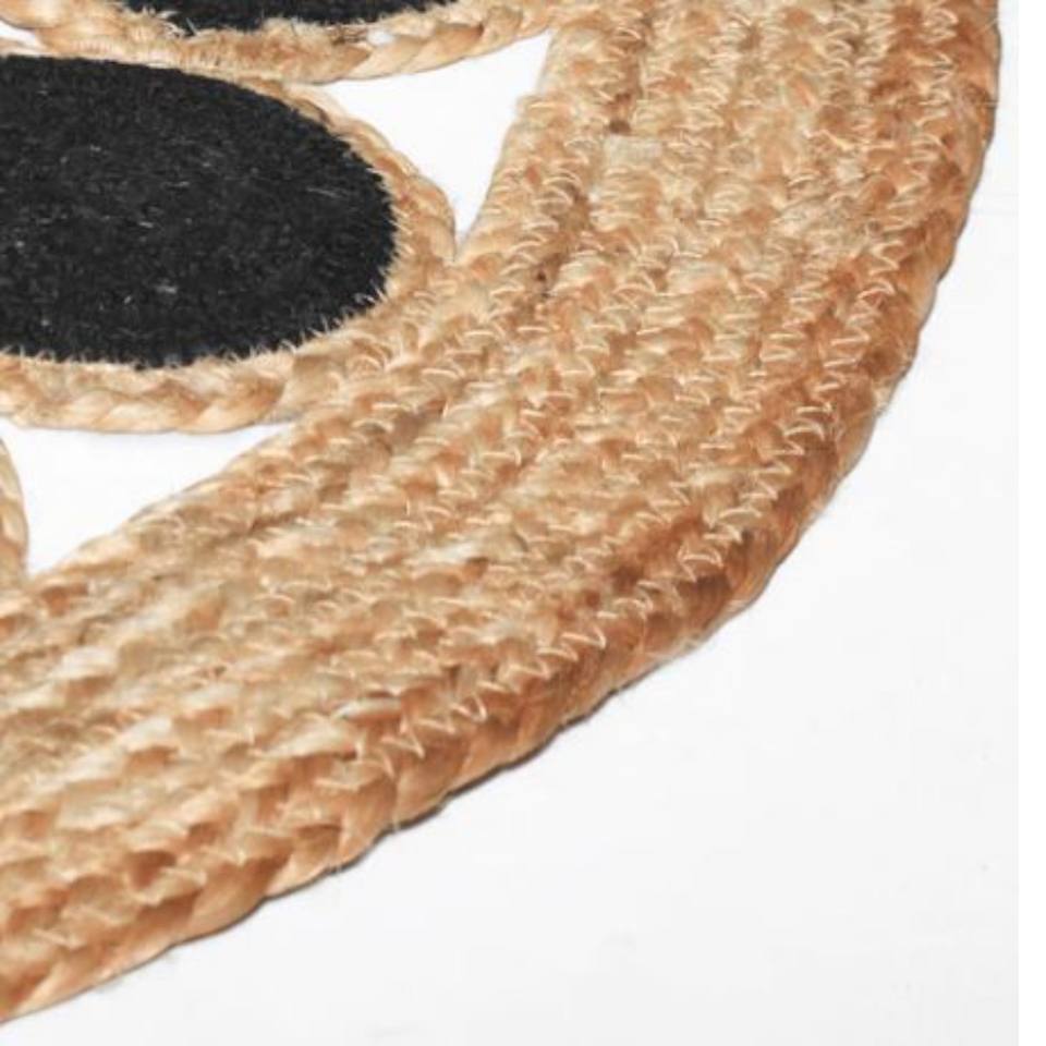พรมปอกระเจาทอมือทรงกลม ลายวงกลมสีดำ