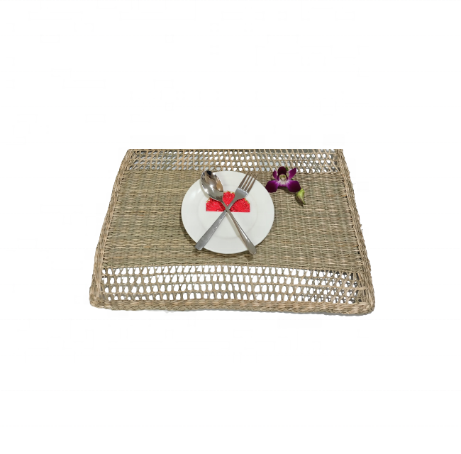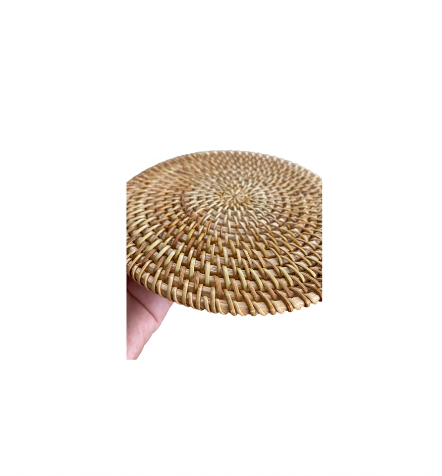 จานหวายสานมือทรงกลมสำหรับโต๊ะรับประทานอาหารแผ่นรองจานแบบเรียบง่ายเป็นมิตรกับสิ่งแวดล้อมสำหรับตกแต่งงานกิจกรรมร้านอาหารโรงแรม