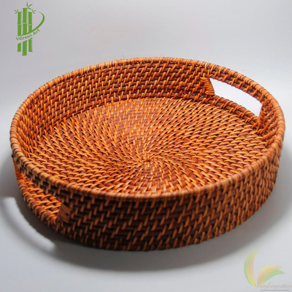 ถาดหวายกลมทอมือ | ถาดเสิร์ฟหวายธรรมชาติ | ตะกร้าตกแต่งโต๊ะทำจากไม้ไผ่/หวาย เป็นมิตรกับสิ่งแวดล้อม