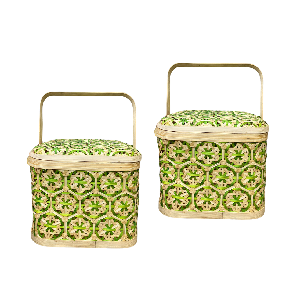 ตะกร้าเก็บของไม้ไผ่สานมือแบบเรียบง่าย ตะกร้าใส่ผลไม้ งานฝีมือทำมือจากเวียดนาม ลายดอกไม้