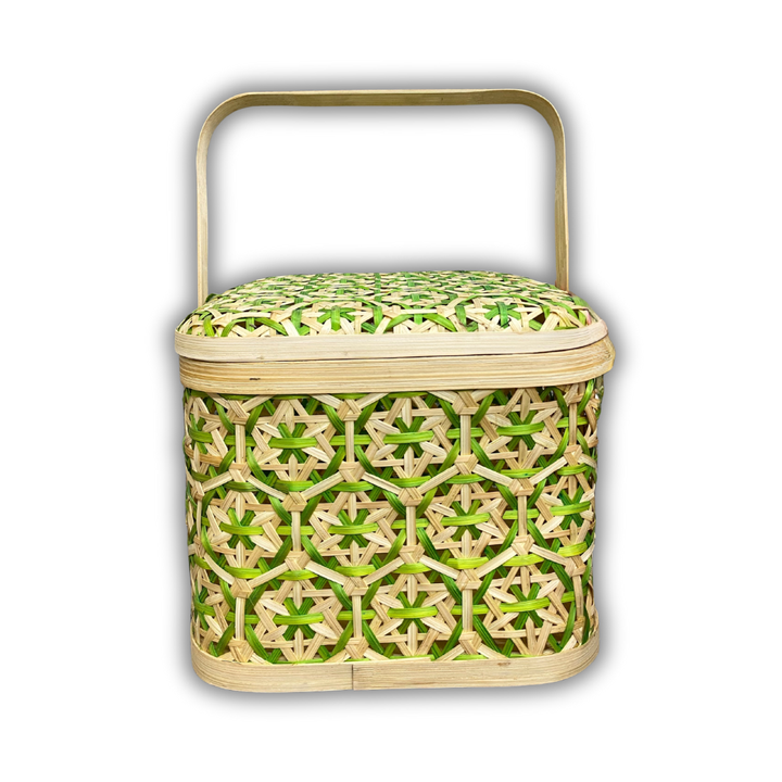 ตะกร้าเก็บของไม้ไผ่สานมือแบบเรียบง่าย ตะกร้าใส่ผลไม้ ลายดอกไม้ ตะกร้าหวายใส่ของขวัญ