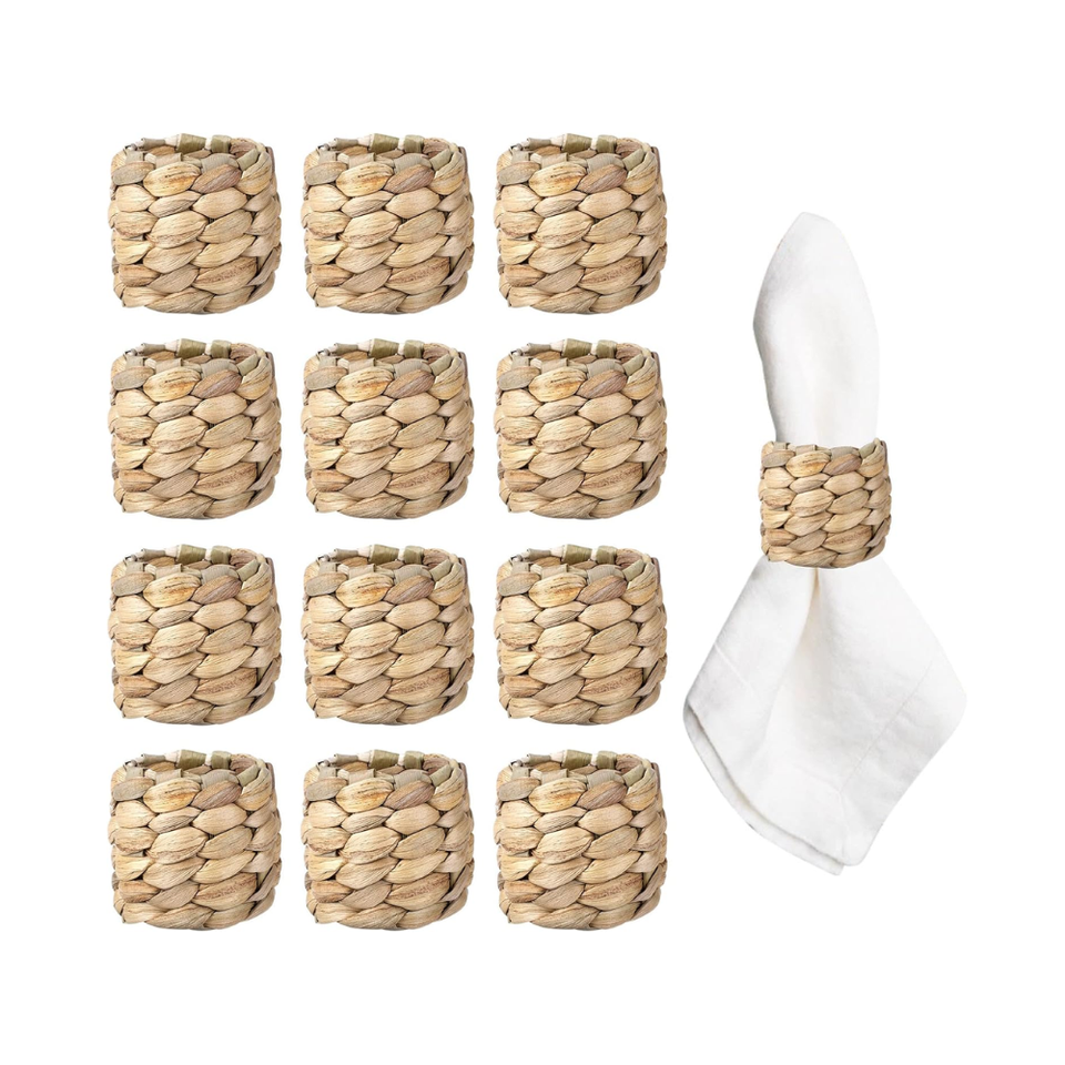 แหวนผ้าเช็ดปากทรงกลมทำจากผักตบชวาแบบทอมือสไตล์เรียบง่ายสำหรับตกแต่งโต๊ะงานแต่งงาน งานเลี้ยง งานฉลองจากเวียดนาม