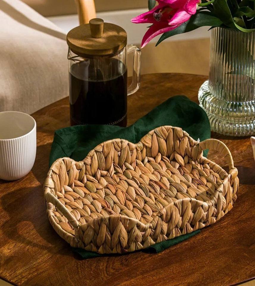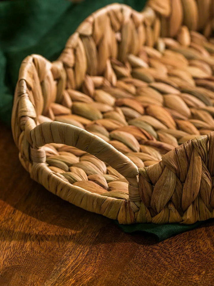 ถาดรองน้ำสำหรับตกแต่งแนวชายฝั่งถาดเสิร์ฟผักตบชวางานหัตถกรรมถักด้วยมือลายลูกไม้