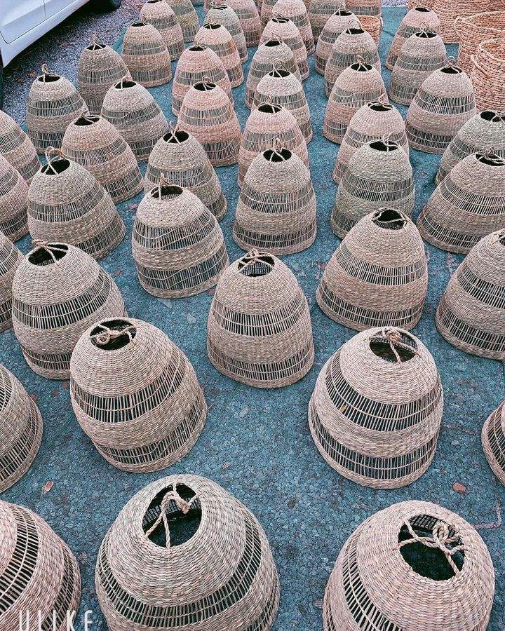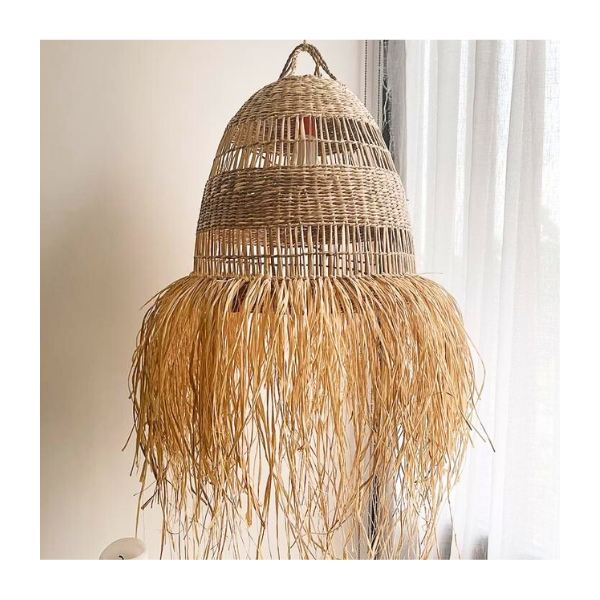 โคมไฟเพดานทำด้วยมือสไตล์ดั้งเดิมทำจากหญ้าทะเลโคมไฟระย้าที่มีรูปทรงเป็นเส้นตรงช่วยเพิ่มการตั้งค่าใดๆ