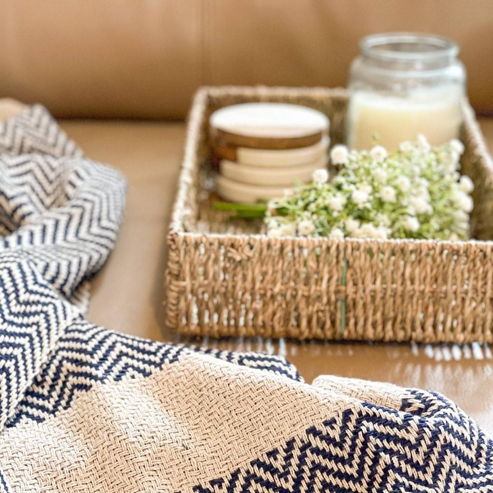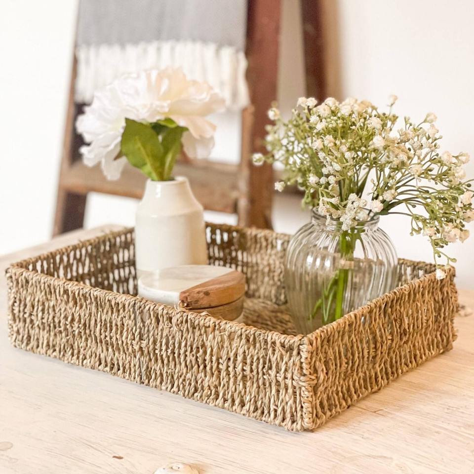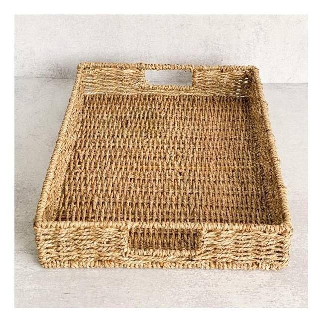 ถาดเสิร์ฟสานมือจากหญ้าทะเลพร้อมหูจับ ถาดสี่เหลี่ยมทรงธรรมชาติสำหรับใช้ในบ้านและครัว ผลิตโดย KingCraftViet