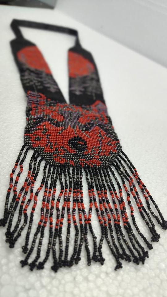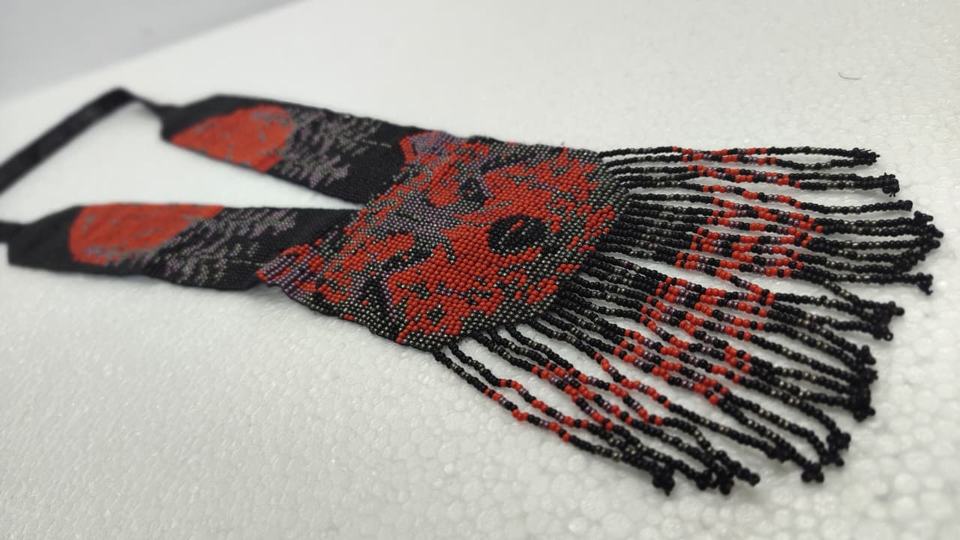 สร้อยคอไหมทอมือประดับมุกเทียมลายมงกุฎสีแดงสดบนพื้นสีดำ เครื่องประดับวินเทจสำหรับงานปาร์ตี้