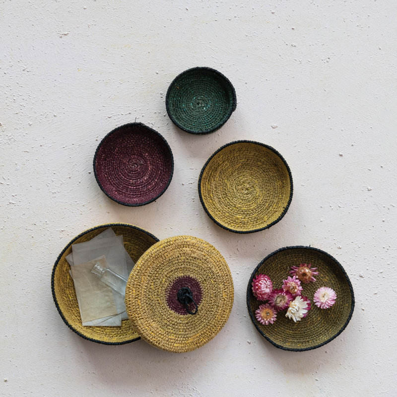ตะกร้าทำรังหญ้าทะเลสานมือพร้อมชุดเก็บฝาปิด