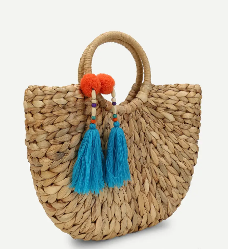 กระเป๋าถือผักตบชวาทอมือเป็นมิตรกับสิ่งแวดล้อมถุงผ้าทอธรรมชาติสำหรับชายหาดช้อปปิ้งหรือใช้ในชีวิตประจำวัน